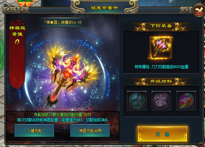 破魔斧提供强大的切割属性,地图中特殊的BOSS防高血厚,普通装备打起来非常辛苦,但是有了破魔斧后,即可对特殊BOSS造成刀刀切割伤害,稳定输出伤害,任何BOSS轻松放到。
