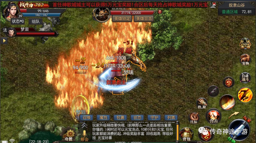 法师:群攻、防低、血量低,打宝升级快。
