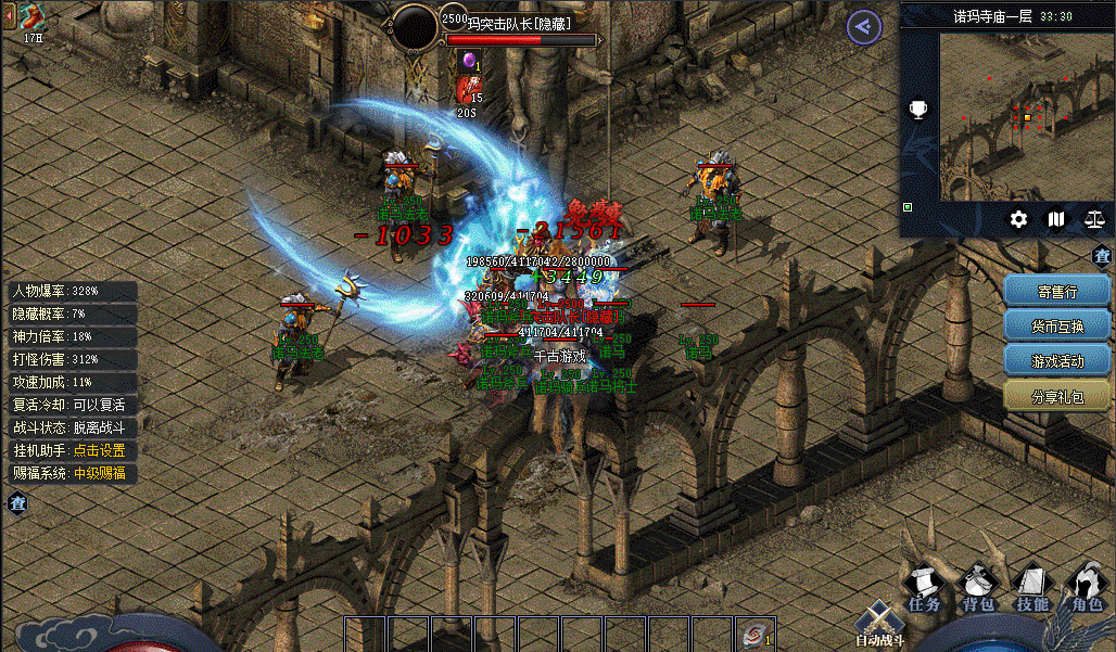 2、无充图、无礼包、送光速捡物、刀刀切割,散人也能轻松打BOSS;