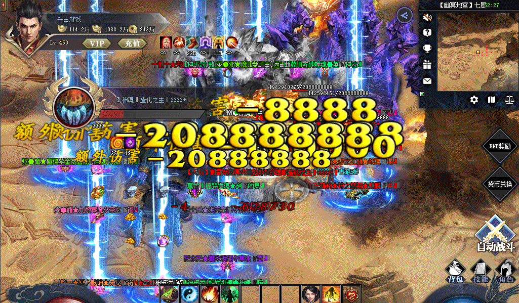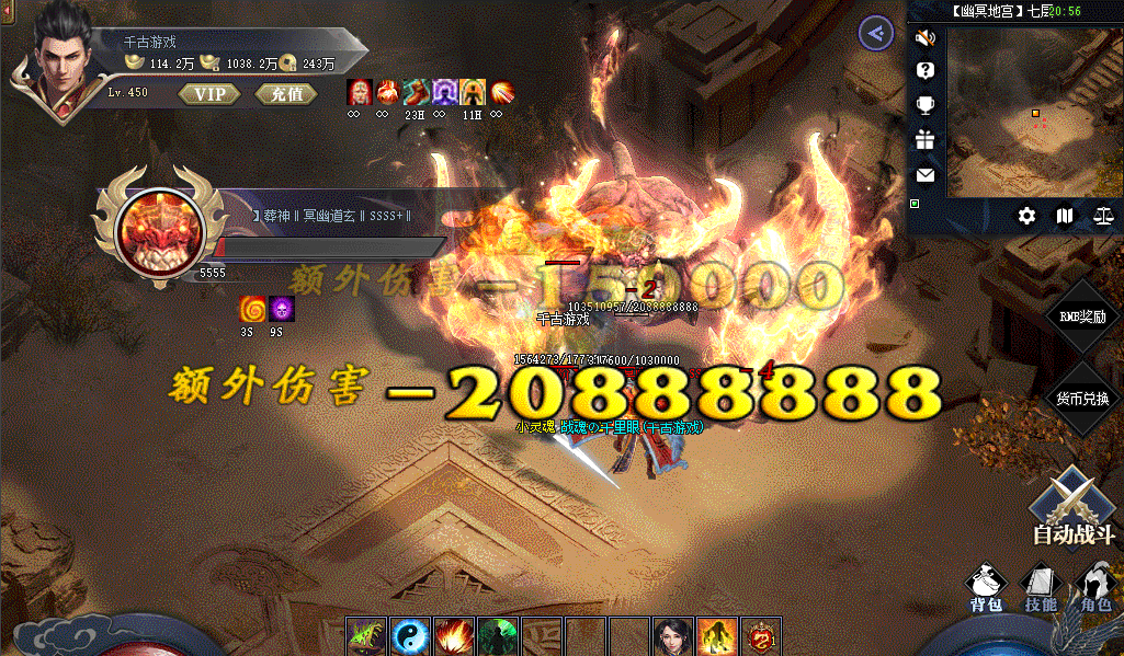 奇遇终极BOSS:击杀任何BOSS都有机会召唤终极魔魂BOSS,可掉落真实充值及顶级装备(普通BOSS也会有几率掉落真实充值)。