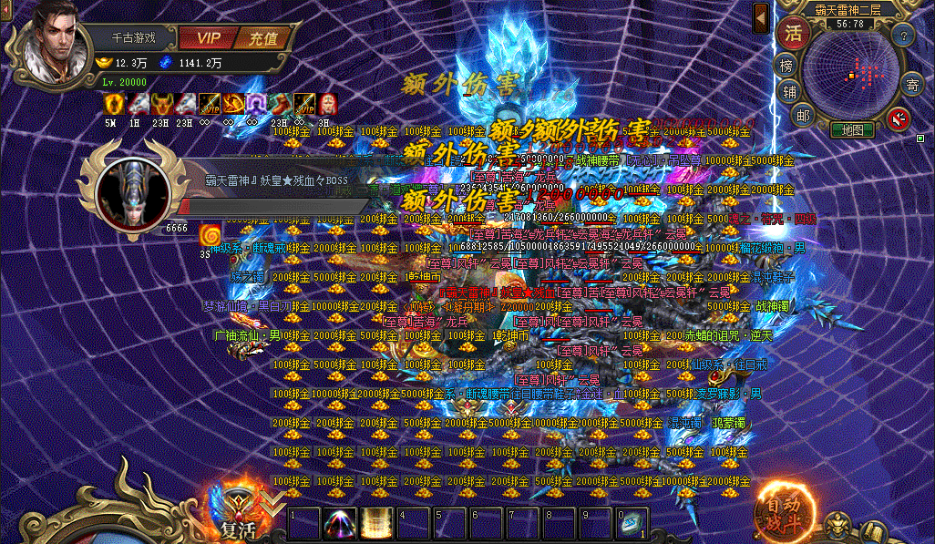 3、多种个人首杀首爆及永久回收,任意怪狂暴充值回馈、散人轻松逆袭;