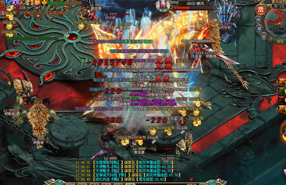 3、多种限时及永久回收奖励,百种BOSS自由探索、充值爆满地,每天打千元;