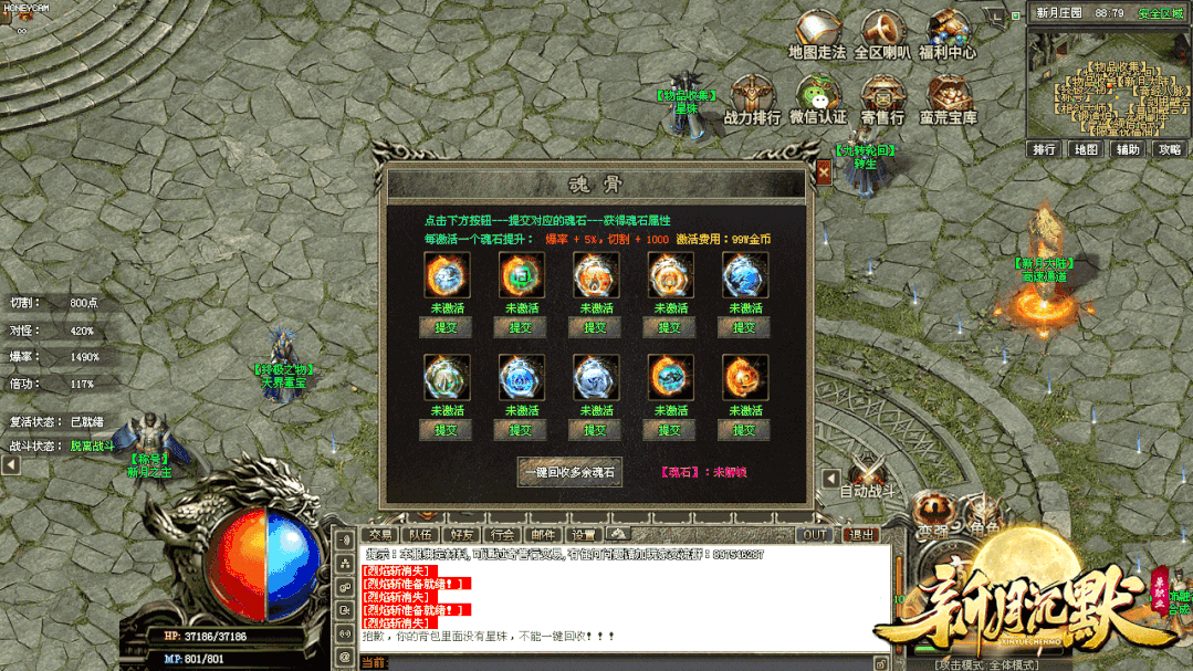 魂石收集:玩家可在打怪过程中获得十种魂石,每种魂石收集3个,可在“新月庄园”魂石NPC处激活额外属性。