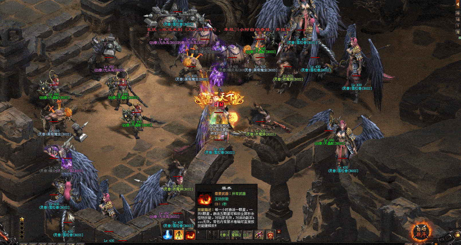 4、全新装备圣化、神翼解封,变猪、减速、反伤、无敌、攻速倍攻,超爽PK;