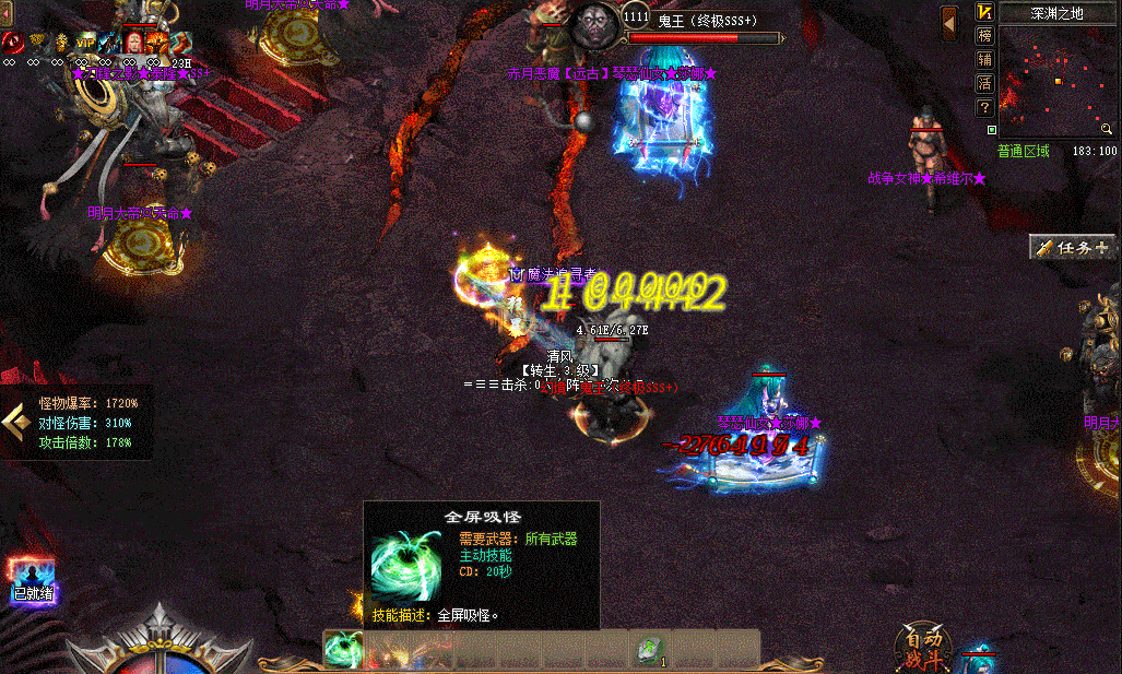 奖励:杀死积分狂暴怪物会随机掉落10-1000积分,奖励丰厚!