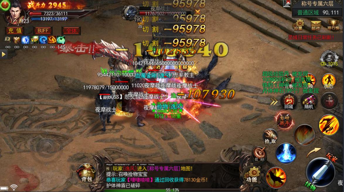 2、炫酷光柱,光速捡物,刀刀切割、刀刀吸血、散人也能轻松打所有BOSS;