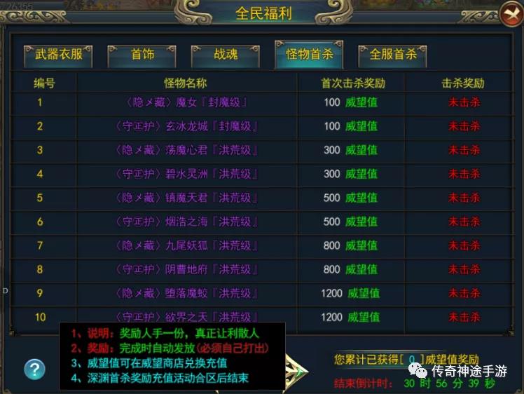 为了使散人更好的发展,游戏设多种个人首杀、首爆奖励,威望值可兑换充值,散人打金好发展。
