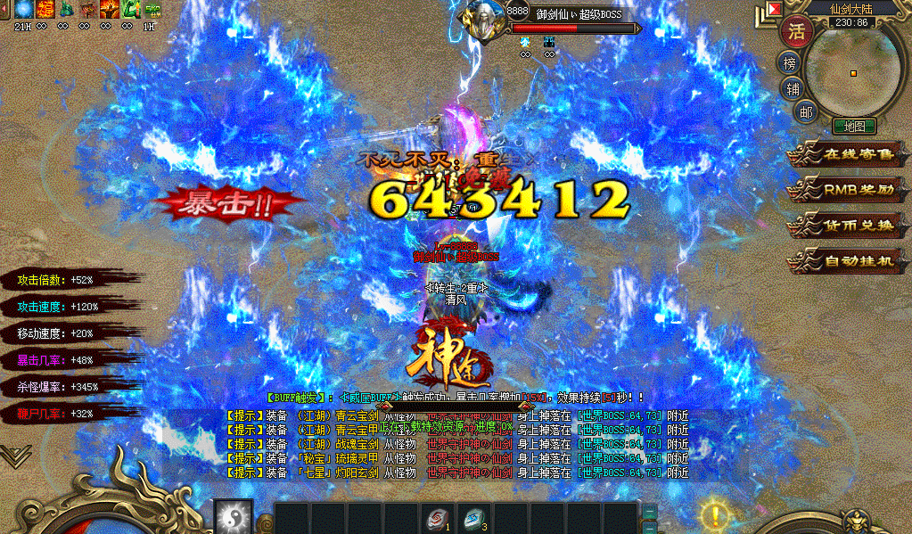 关于爆率说明:该版本等级越高的地图,怪物等级越高爆率越高,真正一切靠打!该版本击杀福利BOSS有几率自动进入福利副本,可掉落充值。