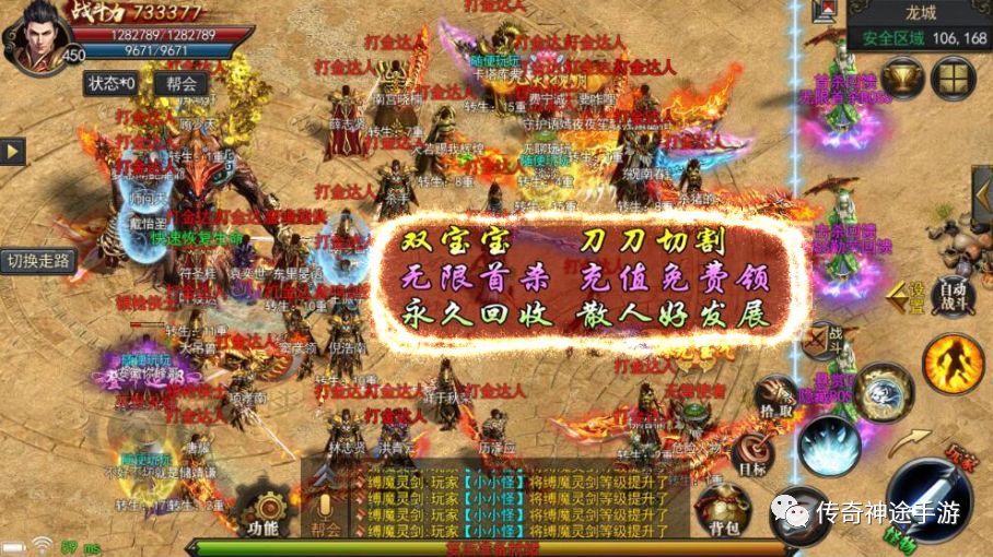3、独创无限首杀、BOSS勤劳回馈、BOSS悬赏回馈,散人福利,装备永久回收充值,只要努力就能拥有一切;