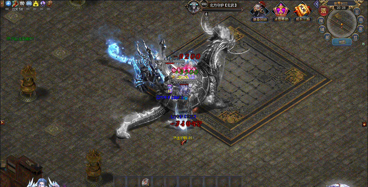 然后就各地图打怪,碰到神级BOSS千万不要错过,元宝、灵符、三宝材料必掉落,神级麒麟几率掉落终级装备。