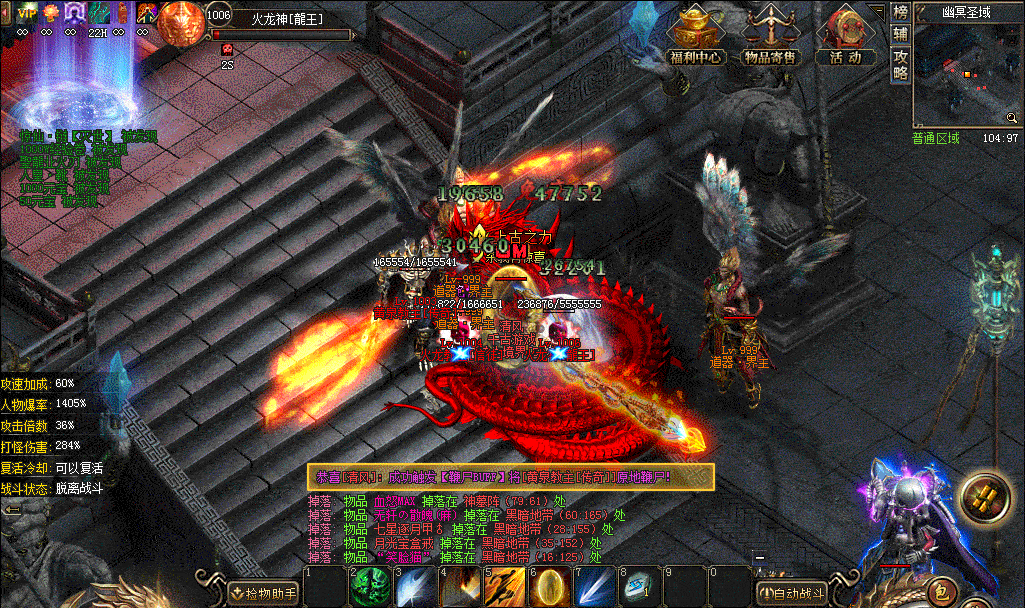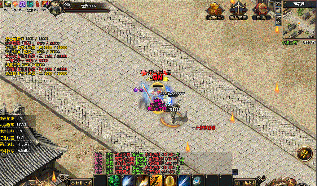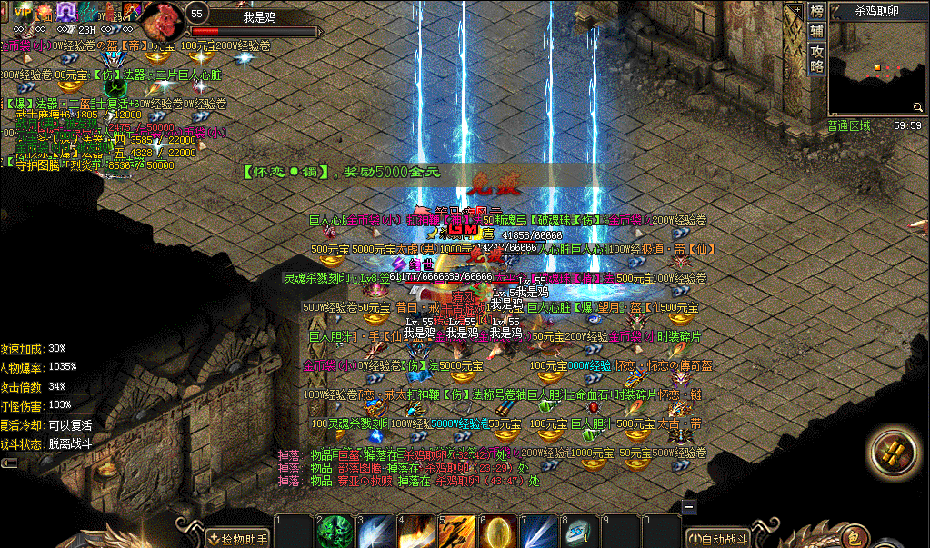 2、炫酷光柱、无忧挂机、送光速捡物、刀刀切割,散人也能轻松打BOSS;