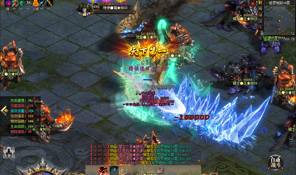 4、全新冰霜血雨群攻、离火破军、致命风华、段位压制、攻速倍攻、超爽PK;