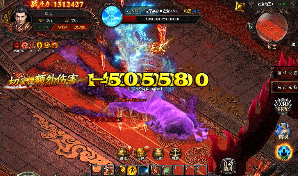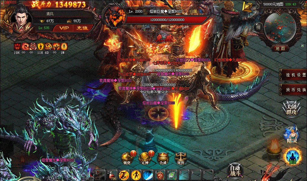 该版本设有丰富的BOSS地图:世界BOSS、密室BOSS、迷失幻境、恶魔巢穴等等让你一直都有打不完的BOSS。