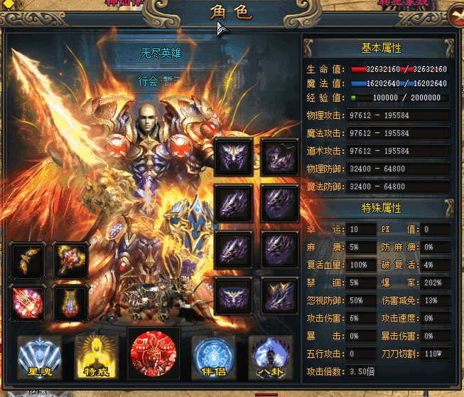 4、特色八神戒:探测、摸金、吸血、吸怪、护身、治愈、火焰、连爆等全爆出;