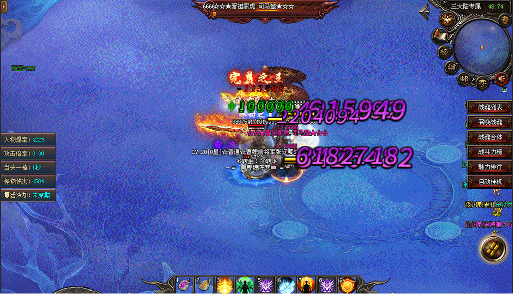 2、送3888充值、个人首杀首爆、送自动回收、切割、极限攻速、打怪效率高;