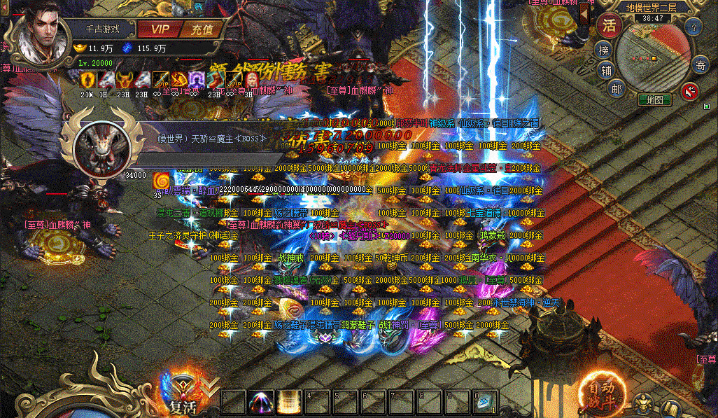 3、多种个人首杀首爆及永久回收,任意怪狂暴充值回馈、散人轻松逆袭;