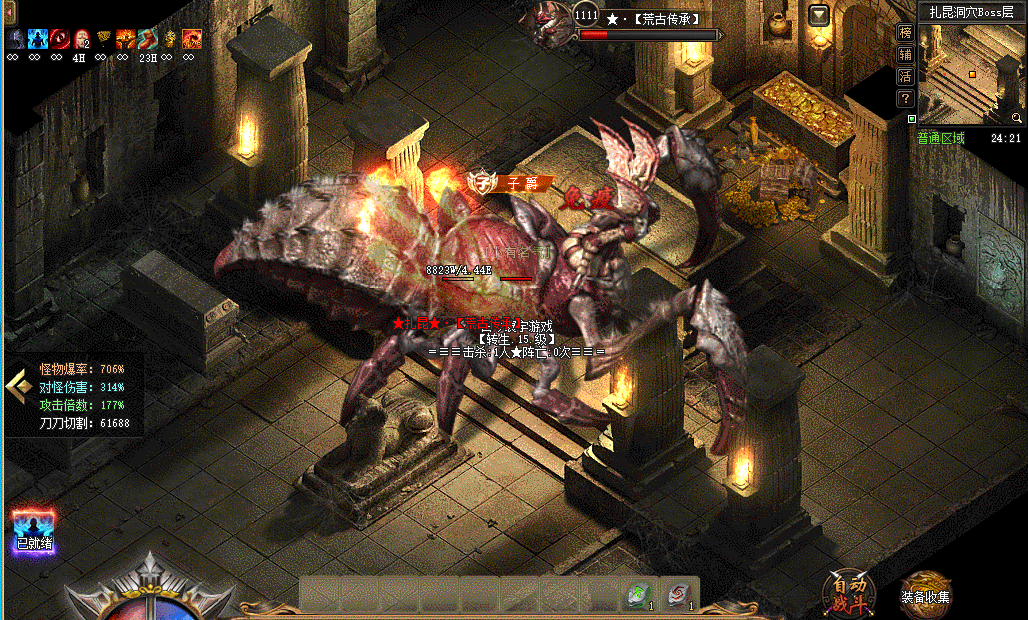 关于爆率说明:该版本装备靠打,地图层次越高,怪物血量越高,爆率越高,另外该版本击杀怪物会随机召唤福利BOSS,击杀可掉落大量充值,千万不要错过!
