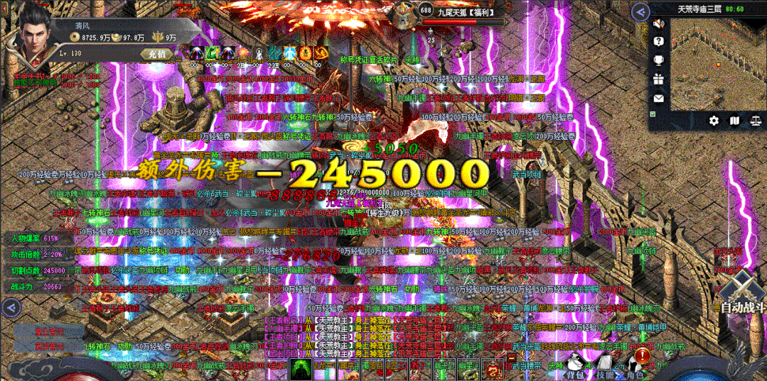 在这个过程中,若是遇到福利怪及BOSS,千万不要错过,击杀福利怪随机获得1-66福利积分,击杀各种红名、福利BOSS及掘金者等BOSS可随机增加大米,并有几率掉落充值红包和各种高级装备及材料!