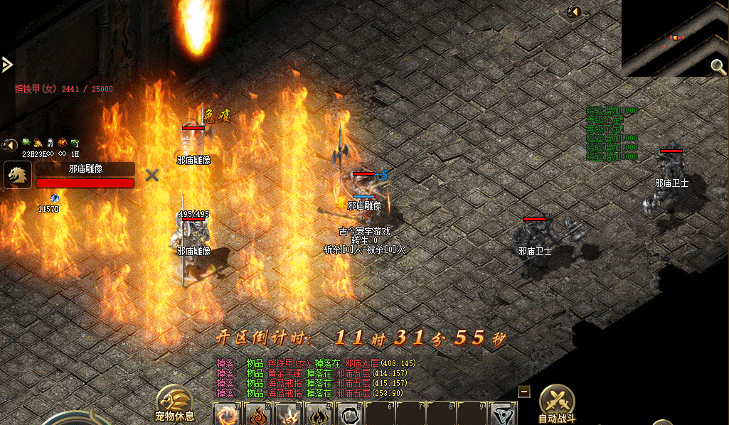 烈火剑法:白野猪、尸王、统领|贵族|精英系列、祖玛教主、虹魔猪卫|蝎卫系列爆出,暴率中等