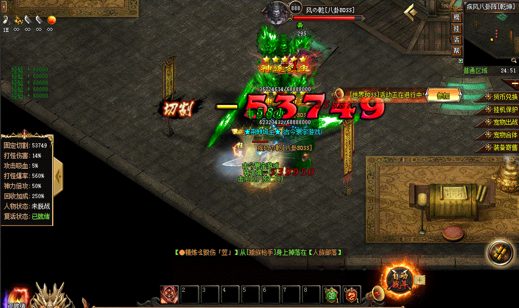 当然进地图前不要忘记开启“狂暴之力”和“神歌赞助”,获得攻速、倍攻、切割及爆率等BUFF加成,装备满屏等着你!