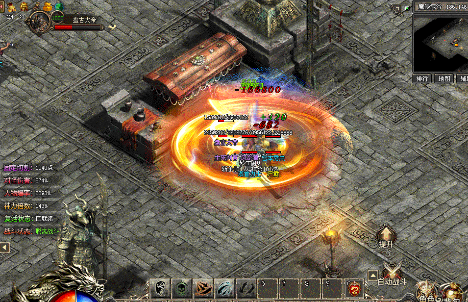 进图前建议开启“神歌捐献”及“狂暴之力”,获得伤害、血量、倍攻、吸血及爆率加成等。满屏装备等你哦!