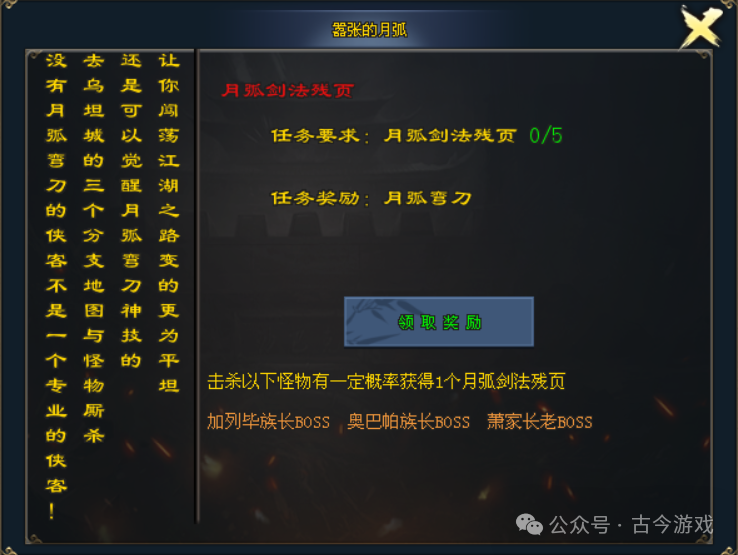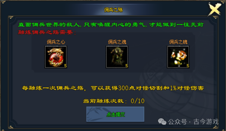【佣兵之殇】-【称号之力】-【称号之谜】这三个剧情一定要做,所给属性在前期非常有用!然后打开小地图按照地图标记的下图顺序打怪先打图1,可爆专属鞋子【破败的战靴】加切割的,该地图里另有别的专属,玩家可在主界面中【专属回收】中的装备介绍处,查看装备所属地图及怪物出处,可以有针对性的下图打怪!