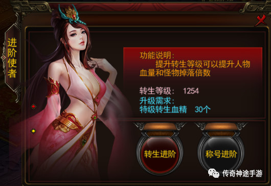 该版本提升转生等级可提升人物血量及怪物掉落倍数;