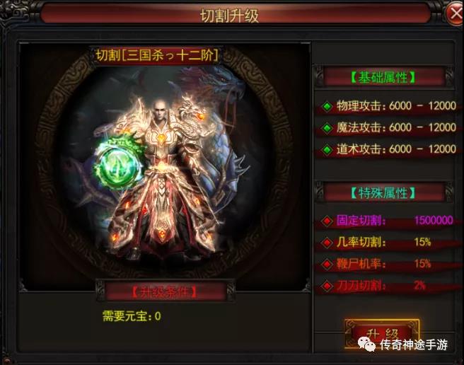 该版本升级切割可提升刀刀切割的伤害,高级切割还可开启刀刀百分比切割效果,切割使用金币或元宝进行升级,金币通过打怪或回收装备获得,金币和元宝可互换。