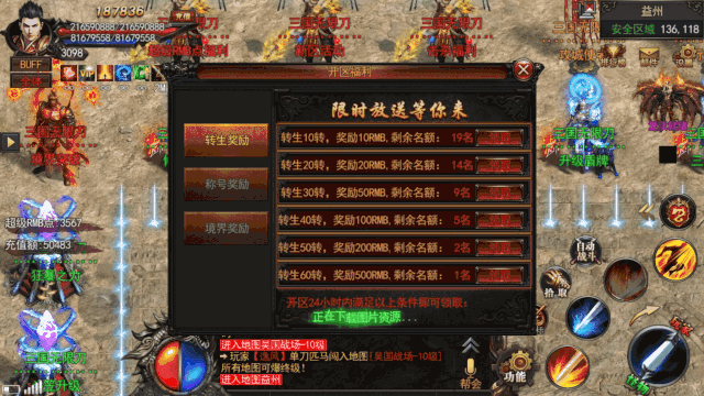 4、多种开服活动,多种限时永久回收奖励、无限击杀BOSS,奖励大量充值点;