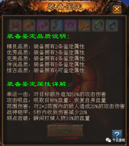 该版本新增装备鉴定玩法,不同品质的装备可鉴定条数不一样,鉴定科获得吸血、群攻、战铠、击破等效果。