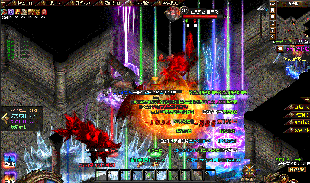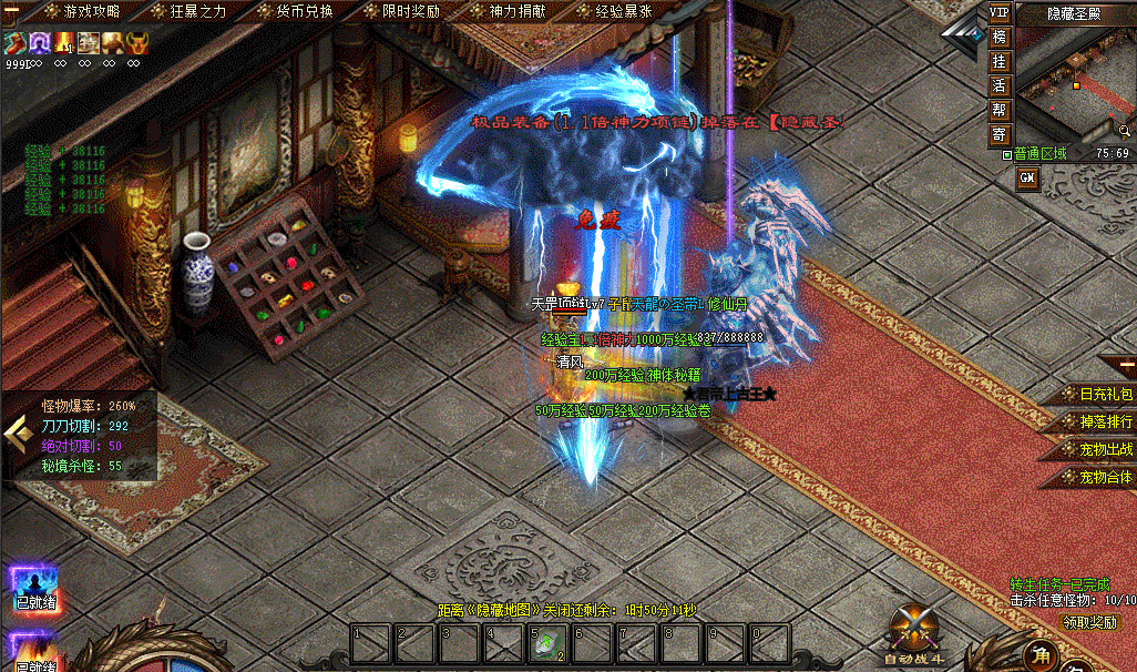 2、送自动回收、光速捡物、刀刀切割、宠物附身,散人也能轻松打BOSS;