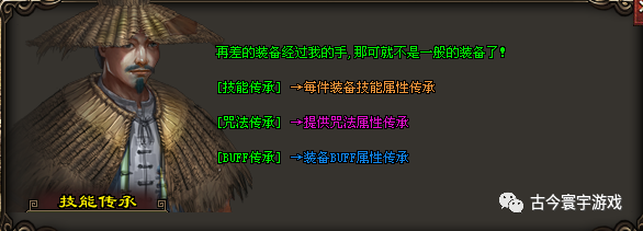 另外打到附加较好的BUFF及技能咒法的装备,可在传承大师处传承。