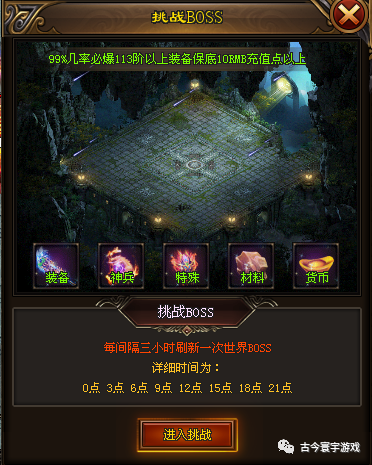 该版本设有激战BOSS活动,99%几率必爆113阶以上装备+保底10RMB充值点!